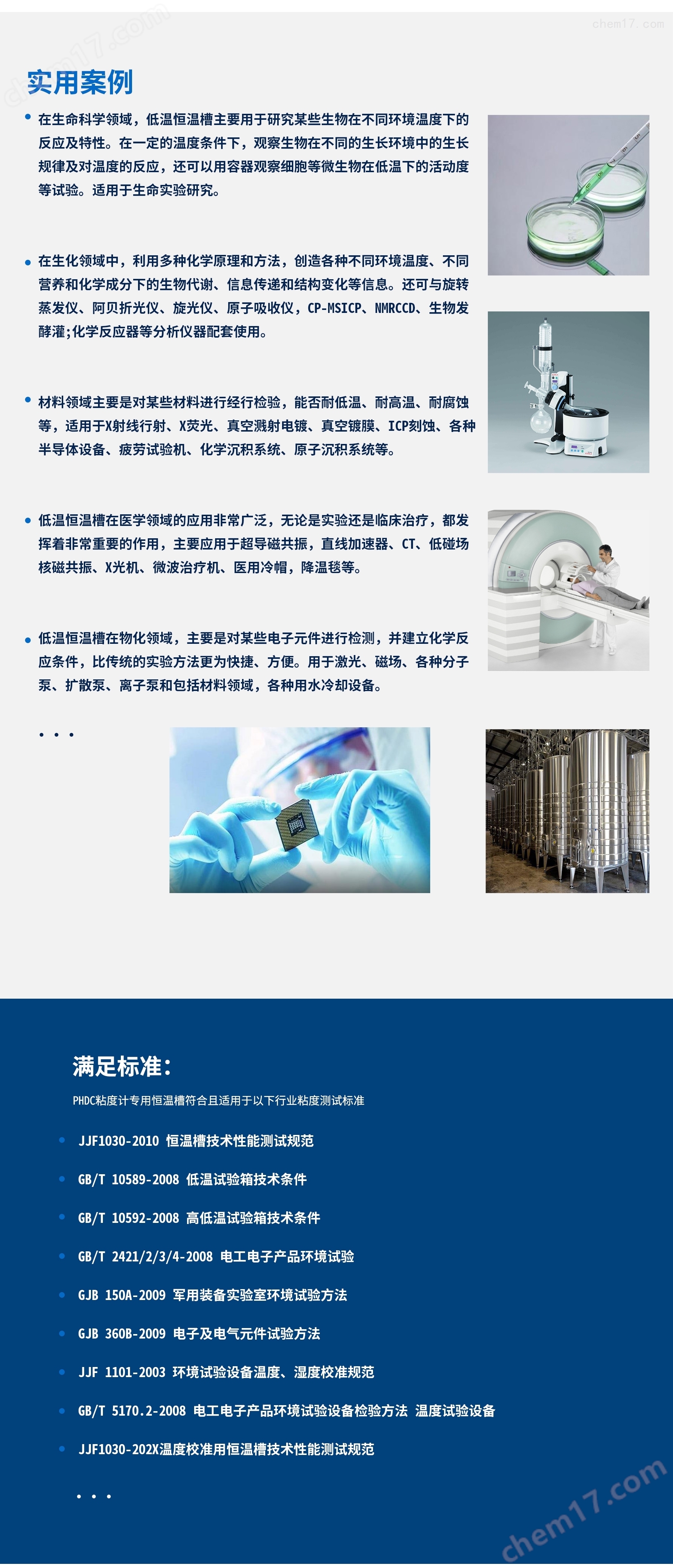 广泛适用于生物工程、医药、食品、化工、冶金、化学分析、石油等领域,为用户提供一个高精度的、受控的、温度均匀的恒定场源,是研究所、高等院校、工厂实验室、质检部门理想的恒温装置。